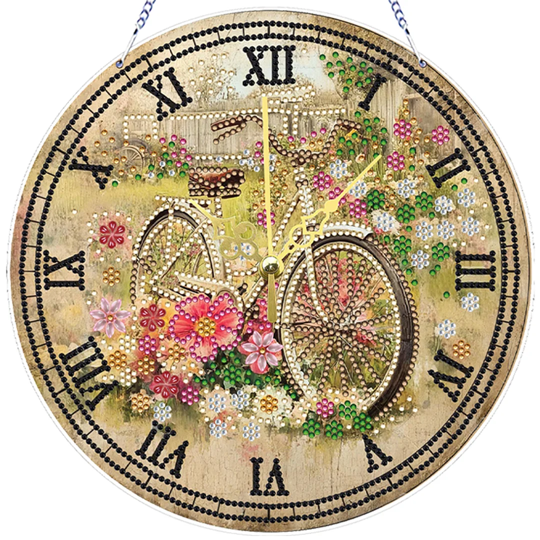 2D DIY Acrylic Bicycle Diamond Painting Clock Pendant w/ Clock Function Wall Art