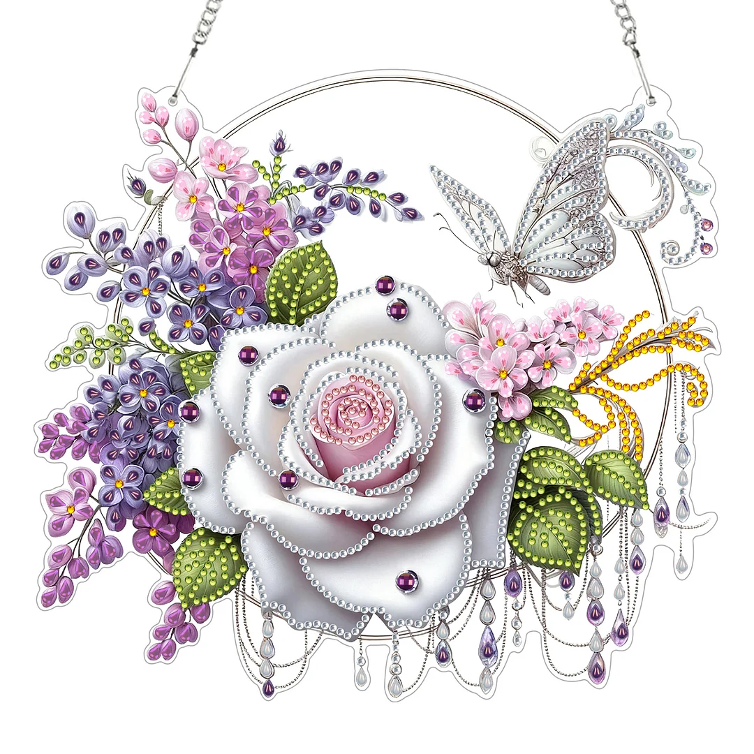 2D Flat DIY Hanging Diamond Art Kits DIY Home Decor Hanging Charm (Rose Wreath)