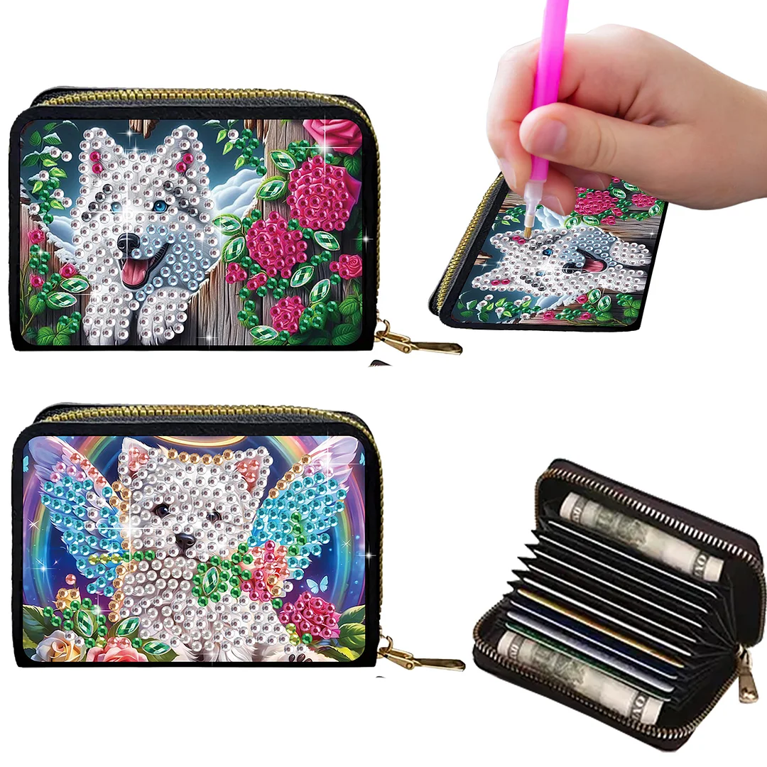 2pcs Dog Pattern Diamond Painting Fashion Card Holder Compact Coin Purse