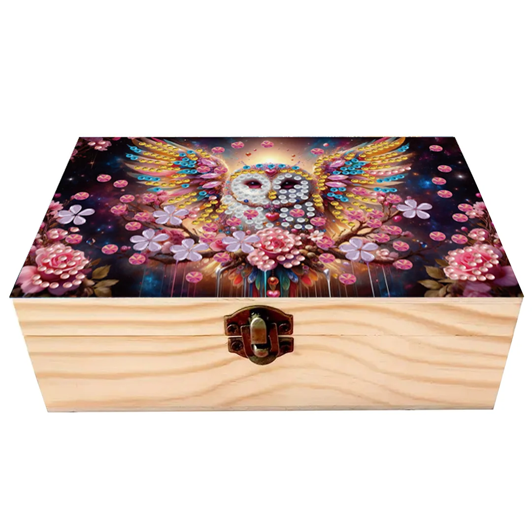 5D DIY Diamond Painting Handmade Wood Storage Box Crystal Storage Case (Owl)