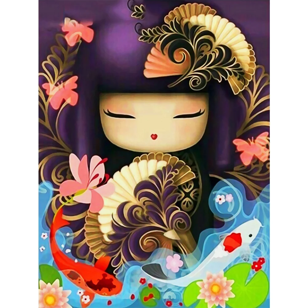 DIY 5D Full Diamond Japanese Doll Resin Painting Cartoon Girl Pattern Round Drill Rhinestones Picture Mosaic Home Decoration Art Handicraft