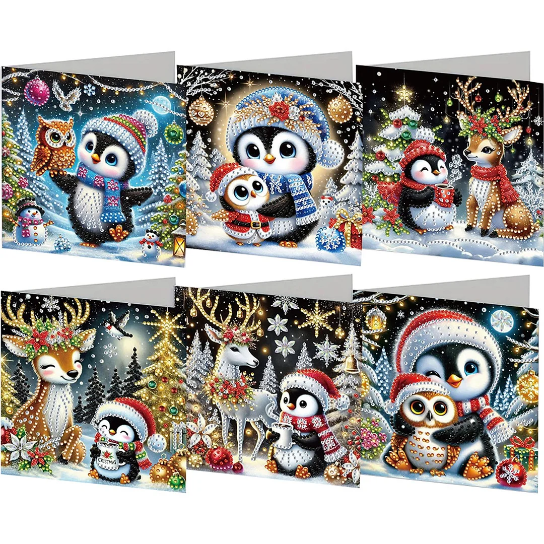 (US Only)6PCS Christmas Penguin DIY Diamond Art Greeting Cards Congratulations Cards