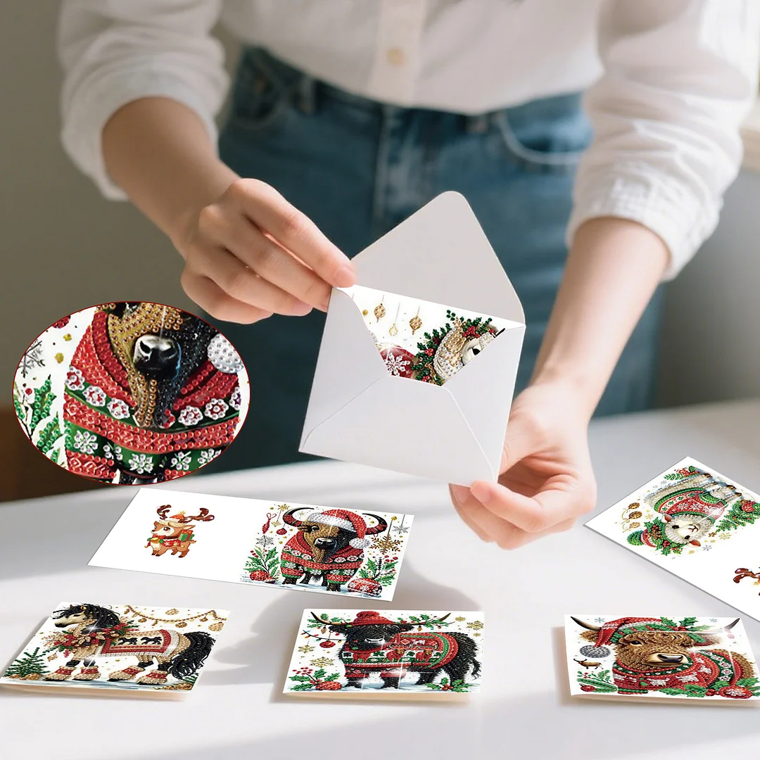 6PCS DIY Diamond Art Greeting Cards Christmas Animal Congratulations Cards Gift