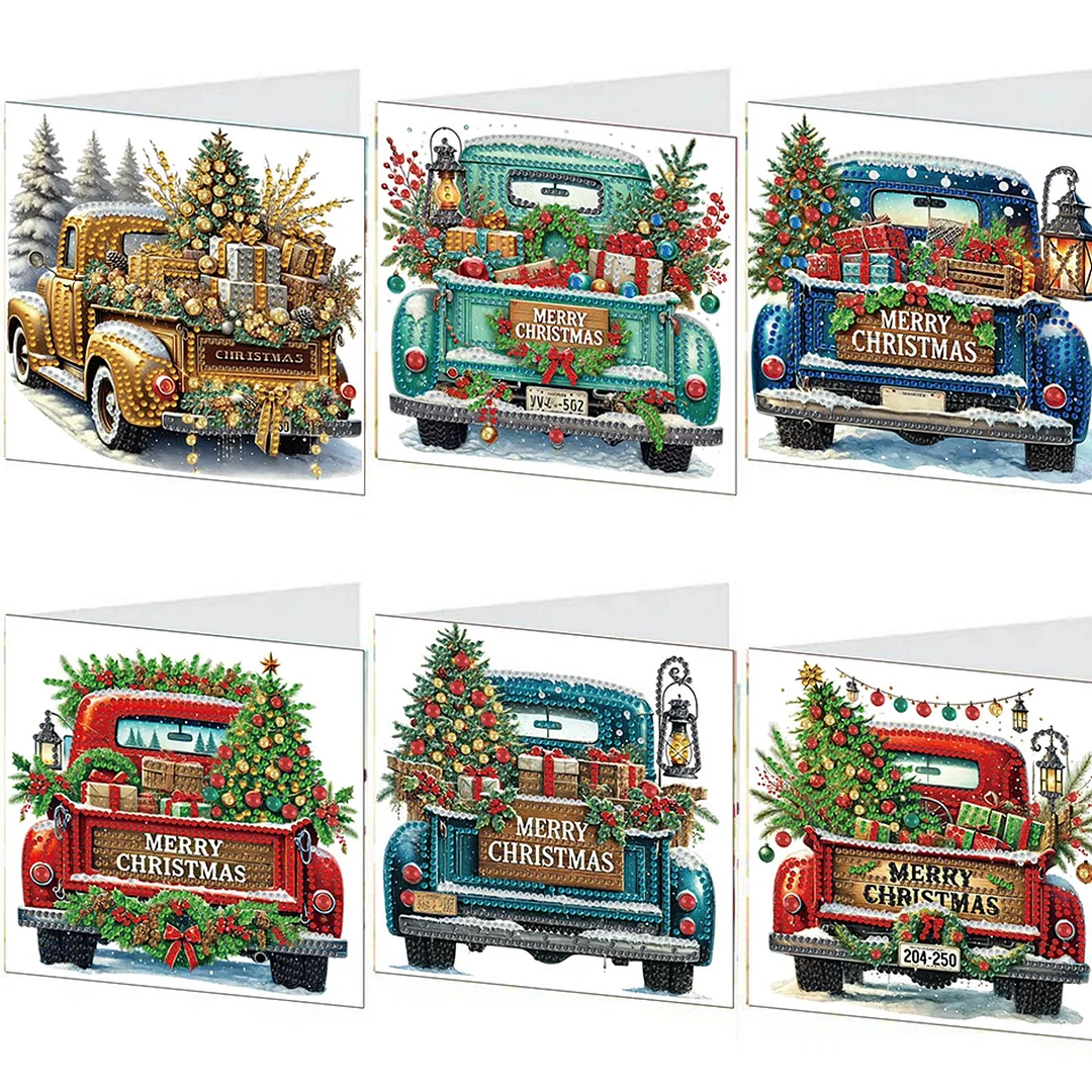 (US Only)6PCS DIY Diamond Art Greeting Cards Christmas Car Congratulations Cards