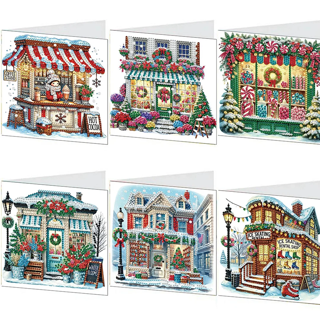 (US Only)6PCS DIY Diamond Art Greeting Cards Christmas Cottage Congratulations Cards