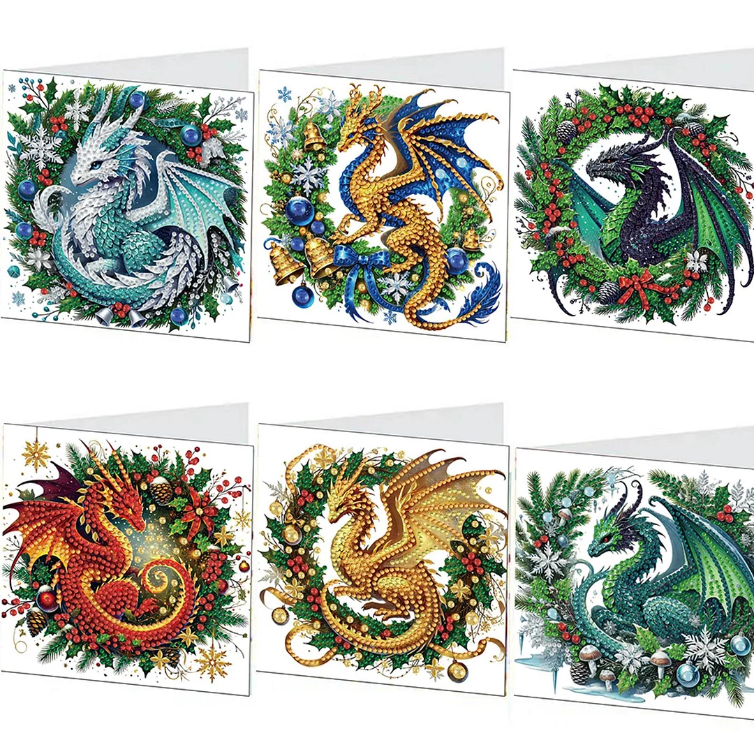 (US Only)6PCS DIY Diamond Art Greeting Cards Christmas Dragon Congratulations Cards