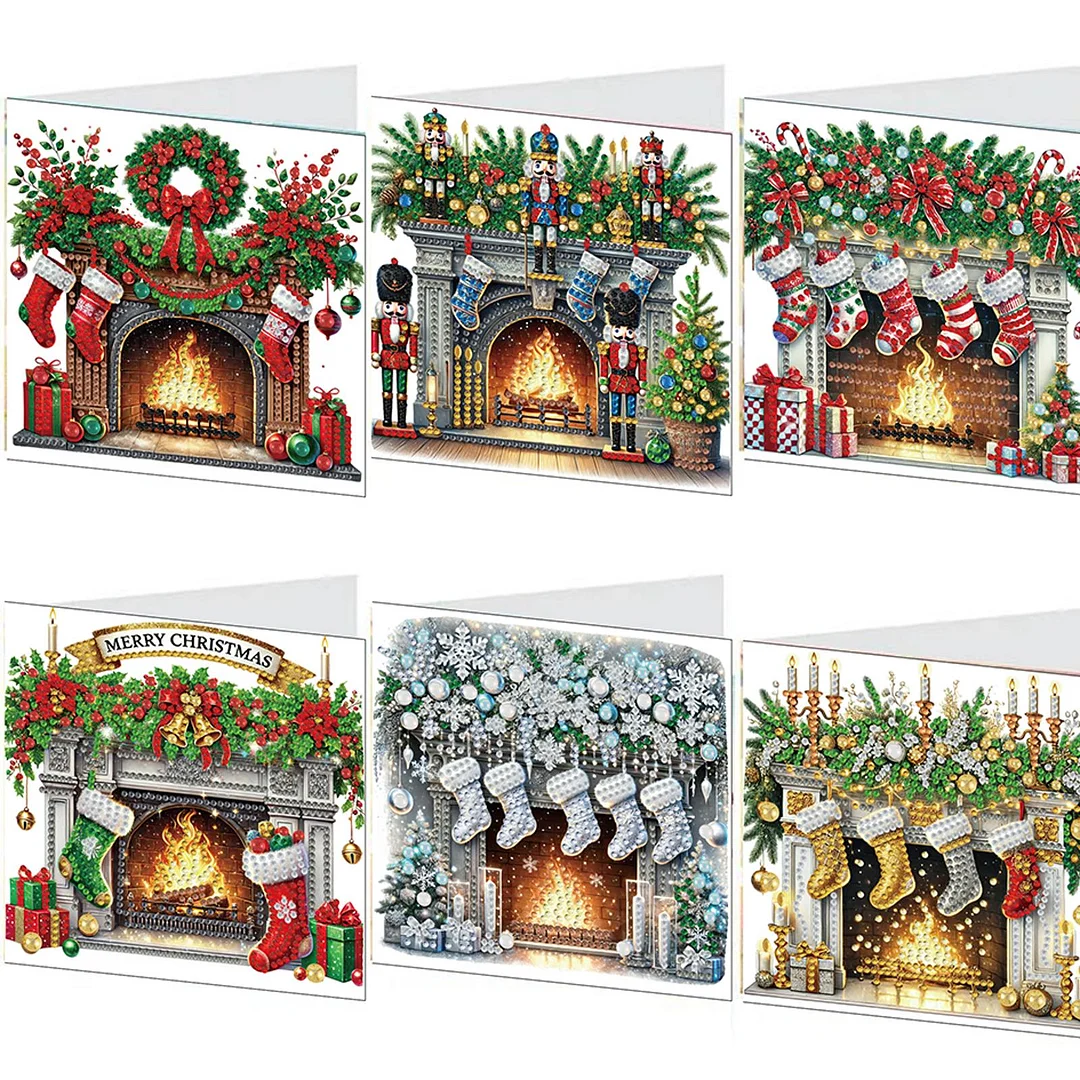(US Only)6PCS DIY Diamond Art Greeting Cards Christmas Fireplace Congratulations Cards