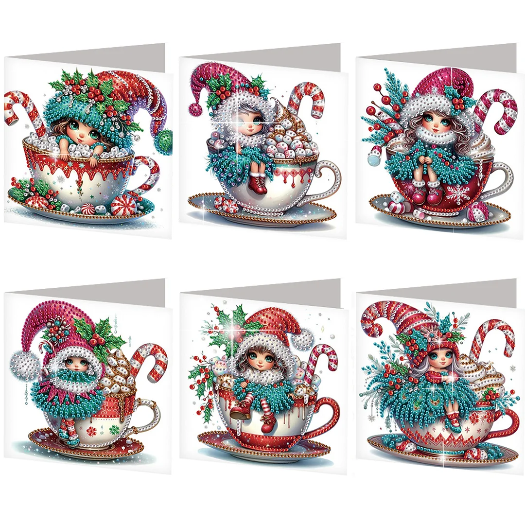 6PCS DIY Diamond Art Greeting Cards Christmas Gnome Congratulations Cards & Gift