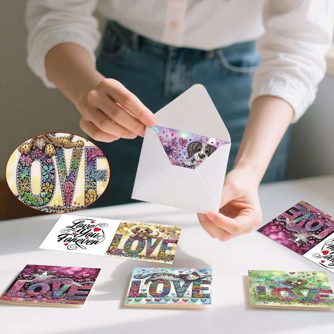 6pcs Love DIY Diamond Art Greeting Cards Thank You Cards and Holiday Blessings