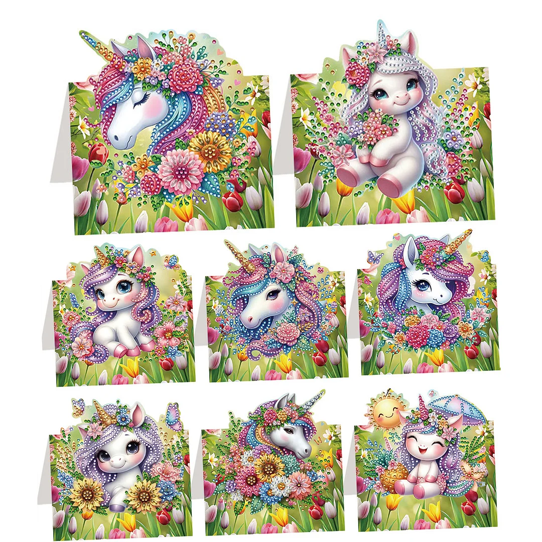 8PCS DIY Diamond Art Greeting Cards Xmas Congratulations Cards & Gifts (Flower)