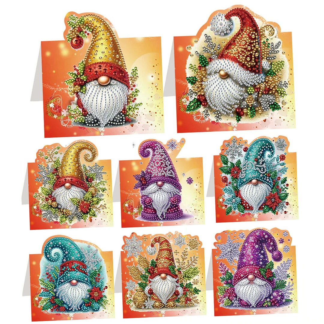 8PCS DIY Diamond Art Greeting Cards Xmas Congratulations Cards & Gifts (Gnome)