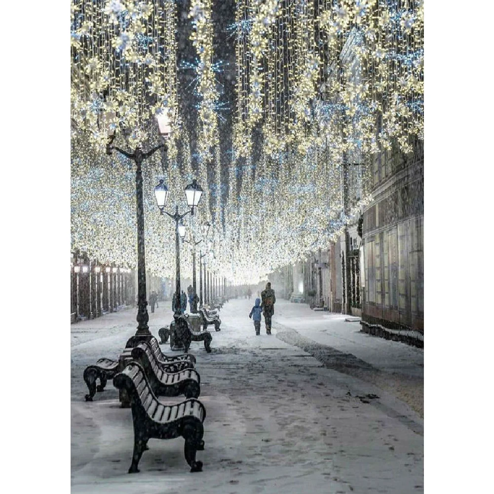 (DB6303) 5D Square Diamond Diamond Painting DIY Snow Street Rhinestone Picture 20X30cm