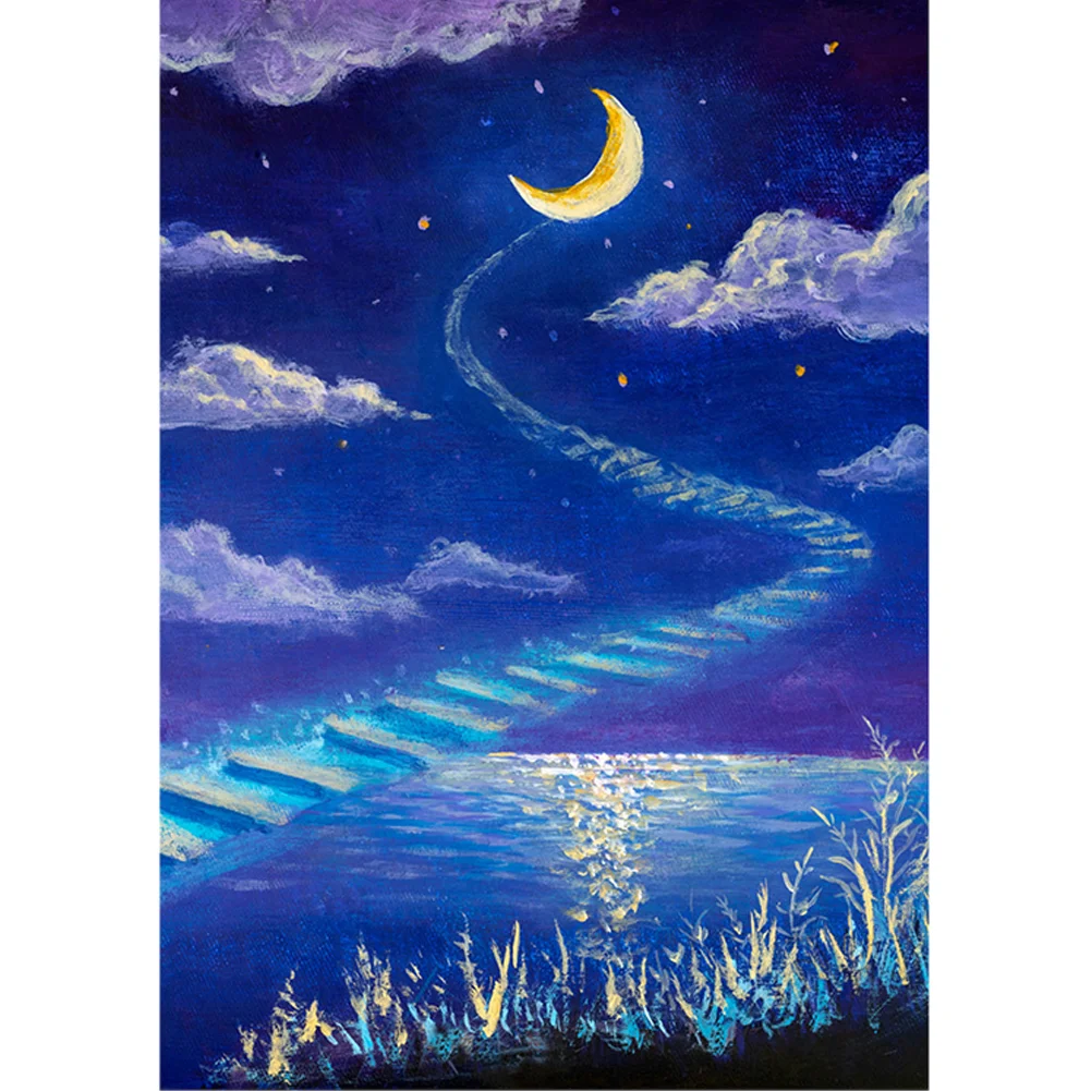 (DB6383) Moon Night DIY Full Drill Diamond Painting 5D Bead Craft Mosaic Picture 20X30cm