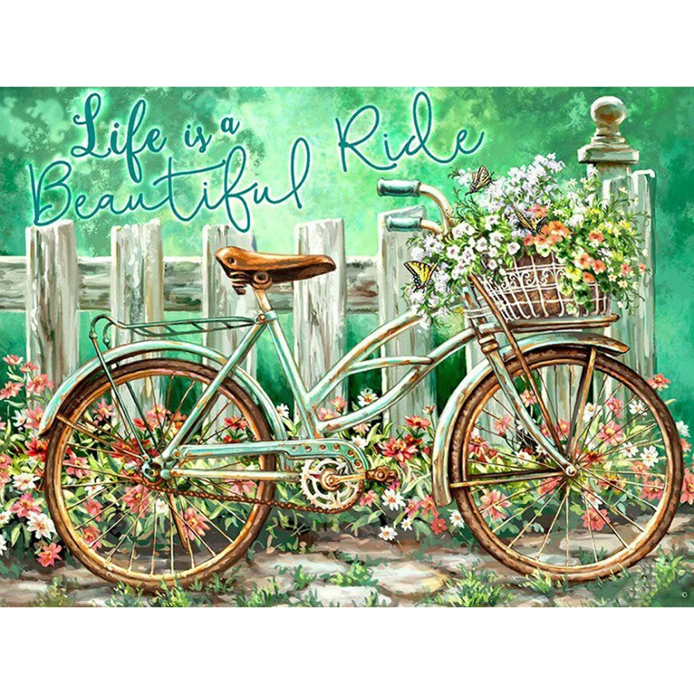 (DB7156) 5D Kit Rhinestone DIY Bicycle in Garden Square Diamond Diamond Painting 20X30cm