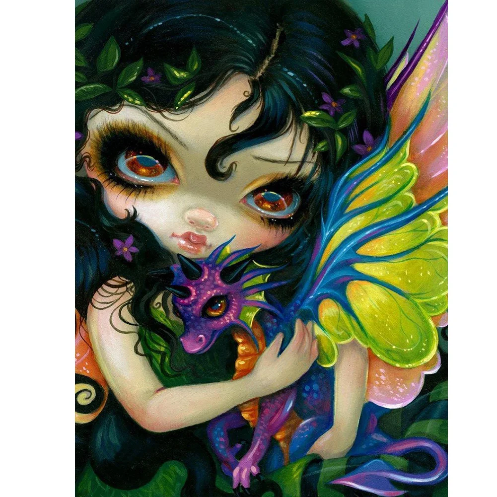 DIY 5D Mosaic Full Drill Round Shape Diamond Big Eyes Cartoon Girl Resin Painting Kit Rhinestone Drawing Home Art Craft Bedroom Decoration