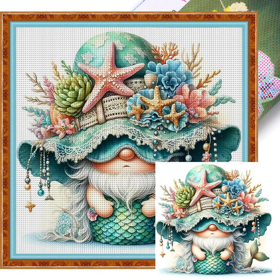 (US Only)Full Embroidery cotton Thread 11CT Printed Gnome Cross Stitch Kit 40x40cm