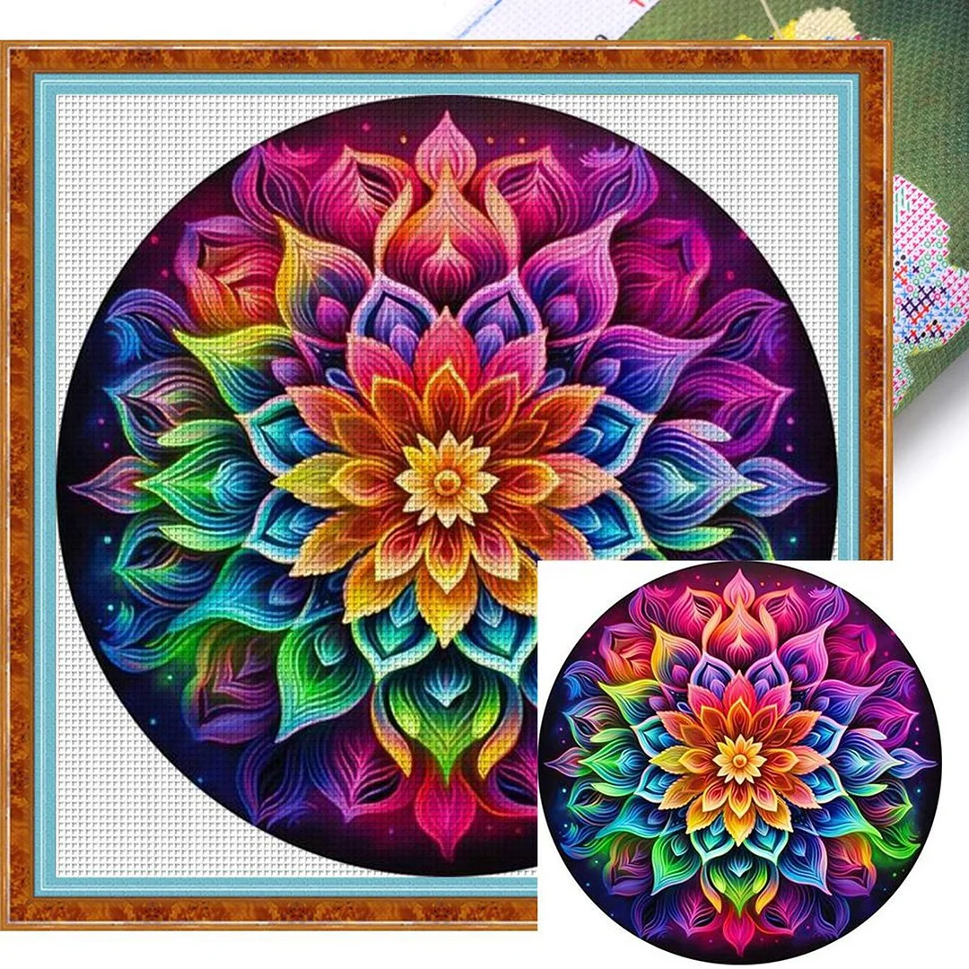 (US Only)Full Embroidery cotton Thread 11CT Printed Mandala Cross Stitch Kit 40x40cm