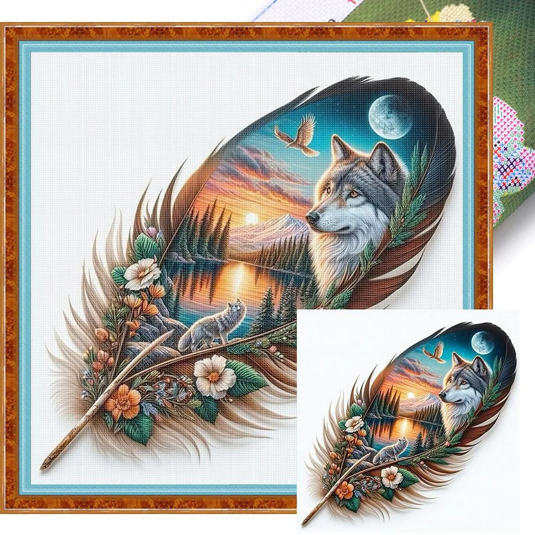 (US Only)Leaf Wolf Printed Cross Stitch Kit 40x40cm DIY 11CT Embroidery Craft Decor