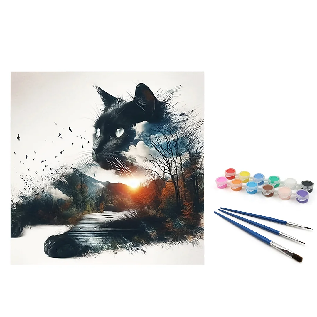 (US Only)Paint By Numbers Kit On Canvas DIY Oil Art Cat Picture Home Wall Decor40x40cm