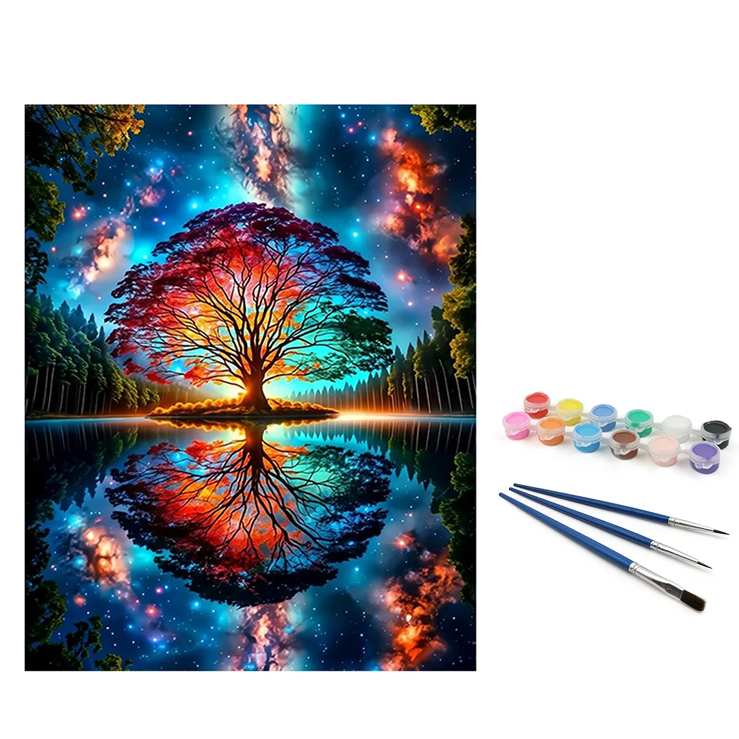 (US Only)Paint By Numbers Kit On Canvas DIY Oil Art Tree Picture Home Wall Decor40x50cm