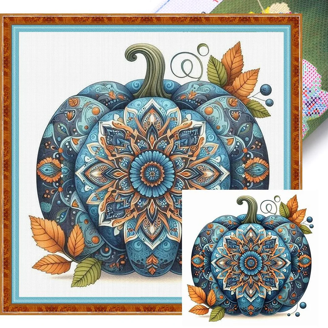 (US Only)Pumpkin Printed Cross Stitch Kit 40x40cm DIY 14CT Embroidery Craft Set Decor