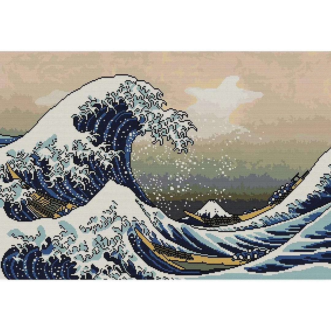 14CT 2 Strands Printed DIY Kanagawa Wave Scenery Stamped Full Cross Stitch Set Cotton Thread Needlework Embroidery Kits Art Needlework Home Decoration