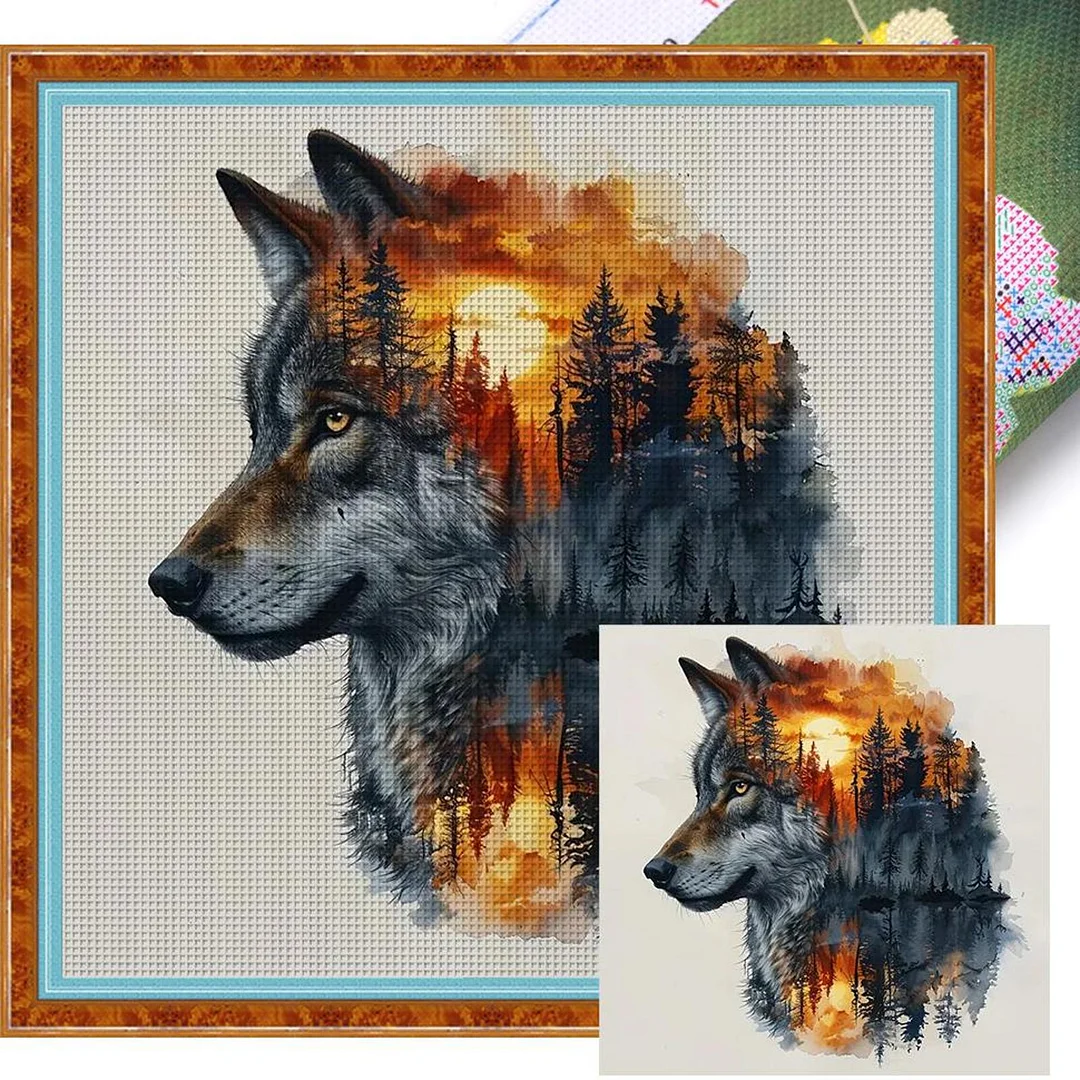 (US Only)Wolf Printed Cross Stitch Kit 45x45cm DIY 14CT Thread Art Needlework Home Decor