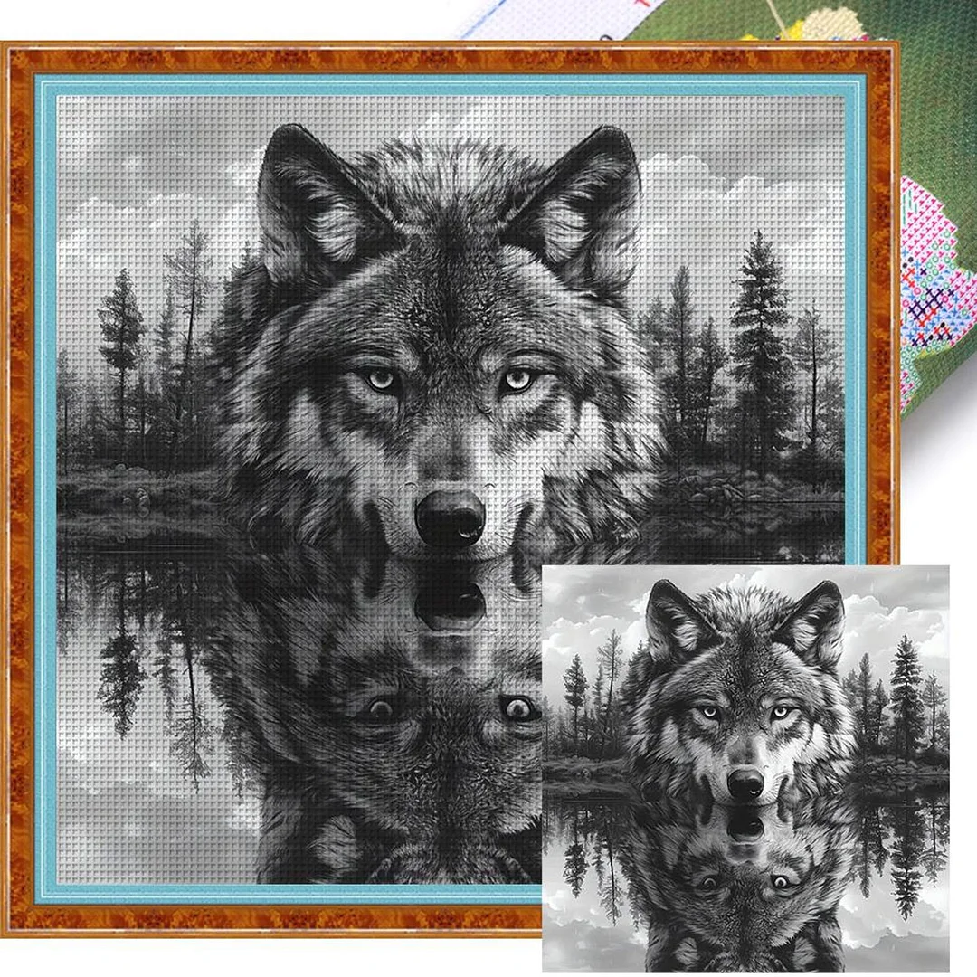 (US Only)Wolf Printed Cross Stitch Kit 50x50cm DIY 14CT Thread Art Needlework Decor