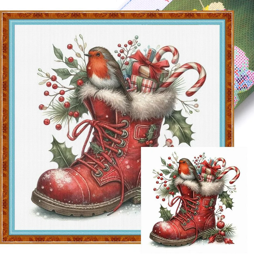 (US Only)Xmas Boot Printed Cross Stitch Kit 40x40cm DIY 11CT Embroidery Craft Set Art