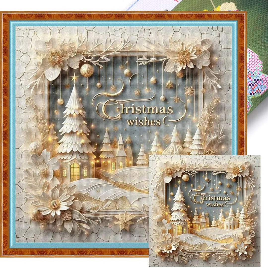 (US Only)Xmas Printed Cross Stitch Kit 40x40cm DIY 11CT Embroidery Craft Set Home Decor