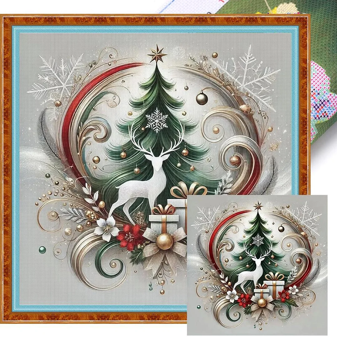 (US Only)Xmas Tree Printed Cross Stitch Kit 45x45cm DIY 11CT Embroidery Craft Set Decor
